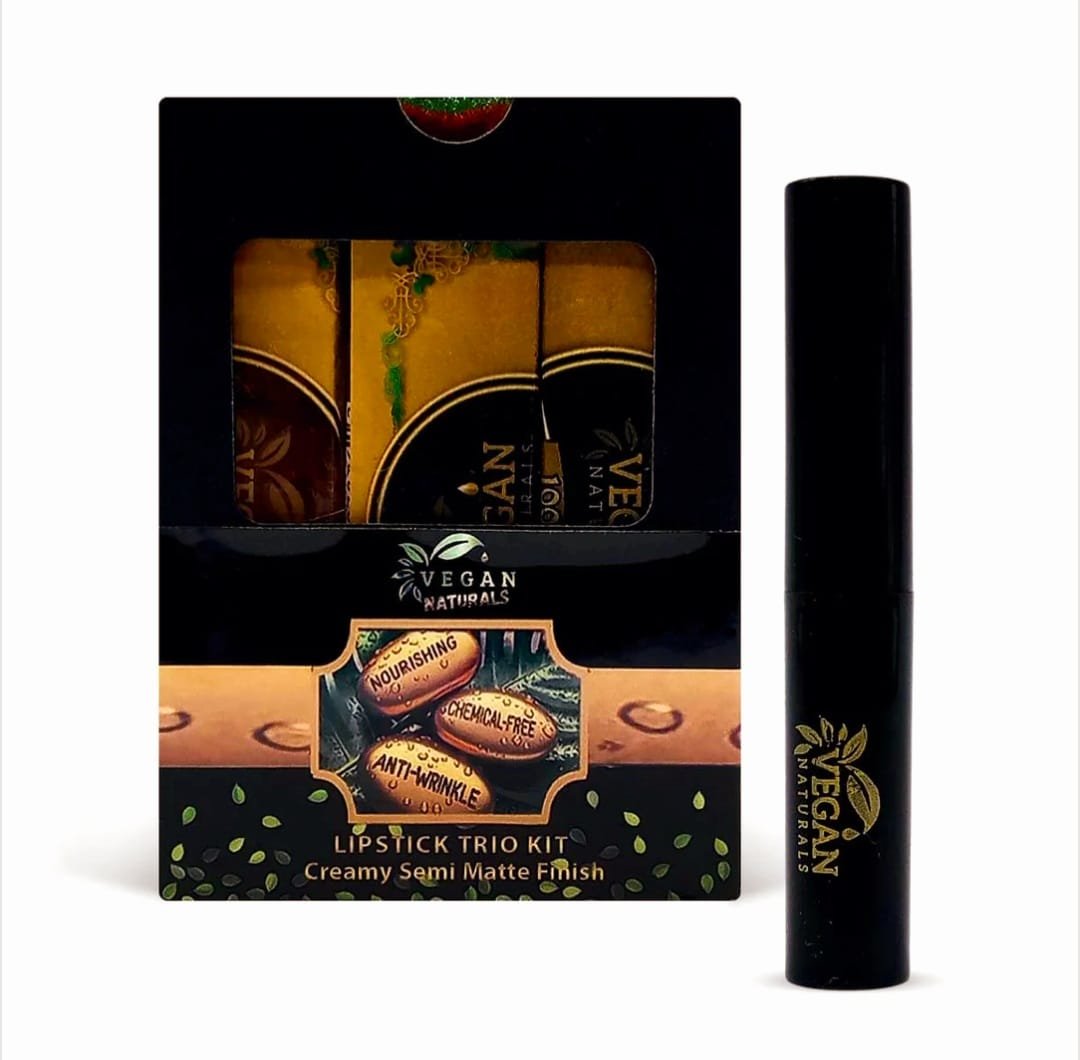Vegan Naturals Hydrating Moisture Lipsticks are made with Safe, Healthy ingredients to heal and protect your lips while enhancing your beauty naturally. These Lipsticks are formulated to balance the skin’s pH level to prevent your lips from cracking and peeling. They also create a moisture lock barrier which seals in nourishing ingredients to heal and regenerate damaged lips. The anti-aging peptides and vitamins contained in the lipsticks visibly lessens the appearance of darkness on lips and decreases the appearance of fine lines. The lipsticks comes in a box containing 3 rich stunning organic lipsticks.